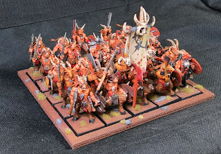 Well, my first 25 Gors are done! Wee-hee! Having this done, along with the Beastlord and Minotaurs, is real motivation to keep pushing ahead and get this army done. Up next will be a unit of ten Chaos Warhounds, followed by a Cygor. Until next time!
